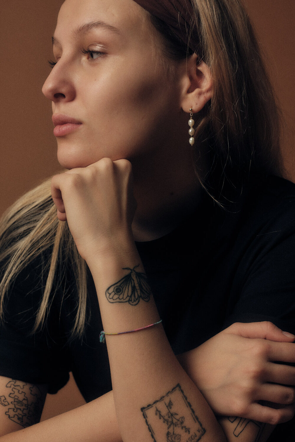 Ohrringe mit weissen Süsswasserperlen und vergoldetem Stecker aus 125er Silber.