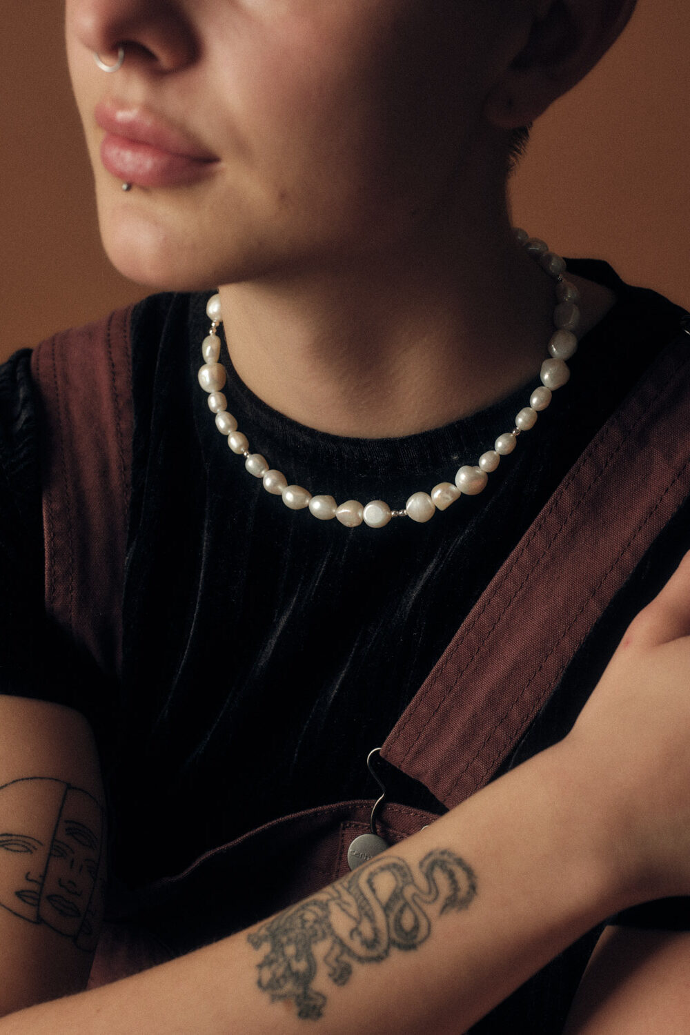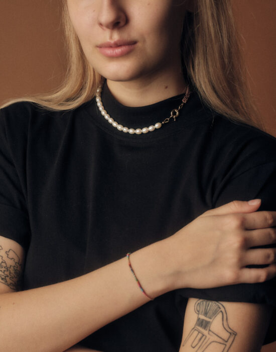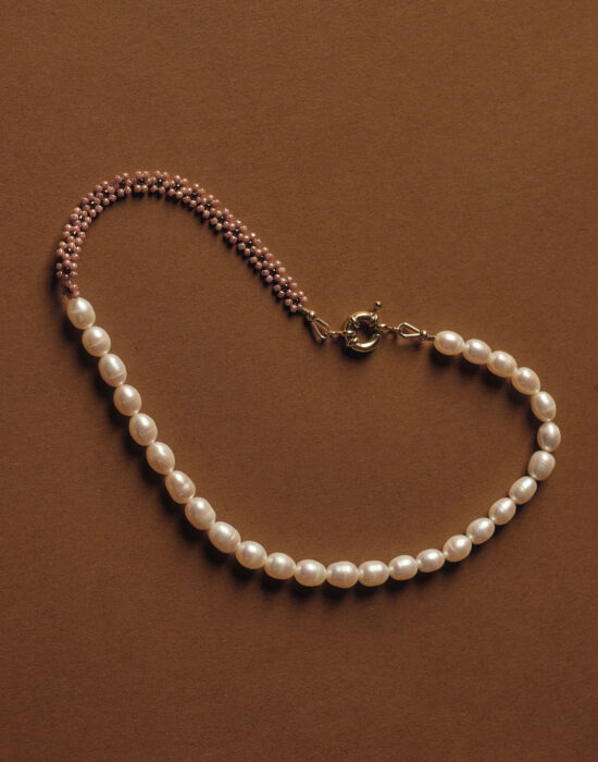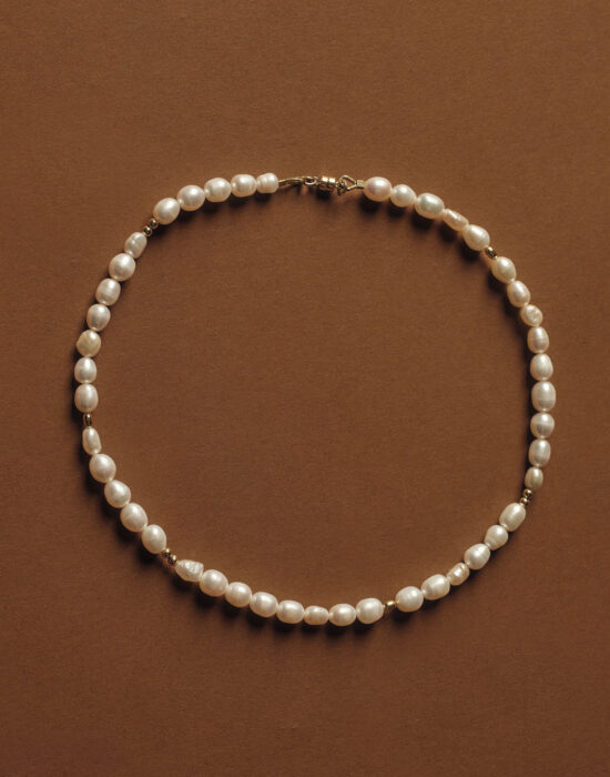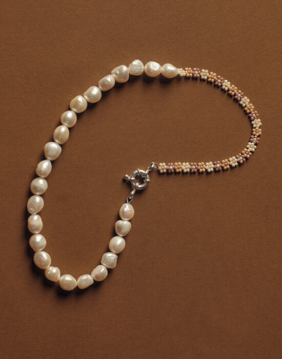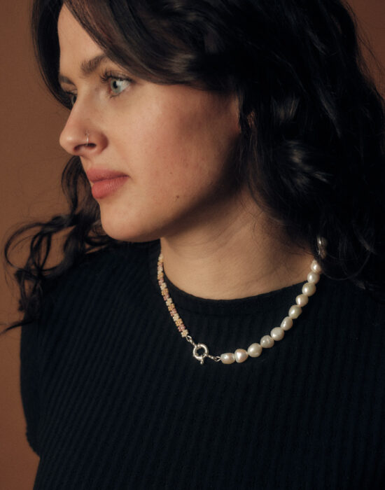 Halskette mit weissen Süsswasserperlen und Perlen aus 925er Silber.