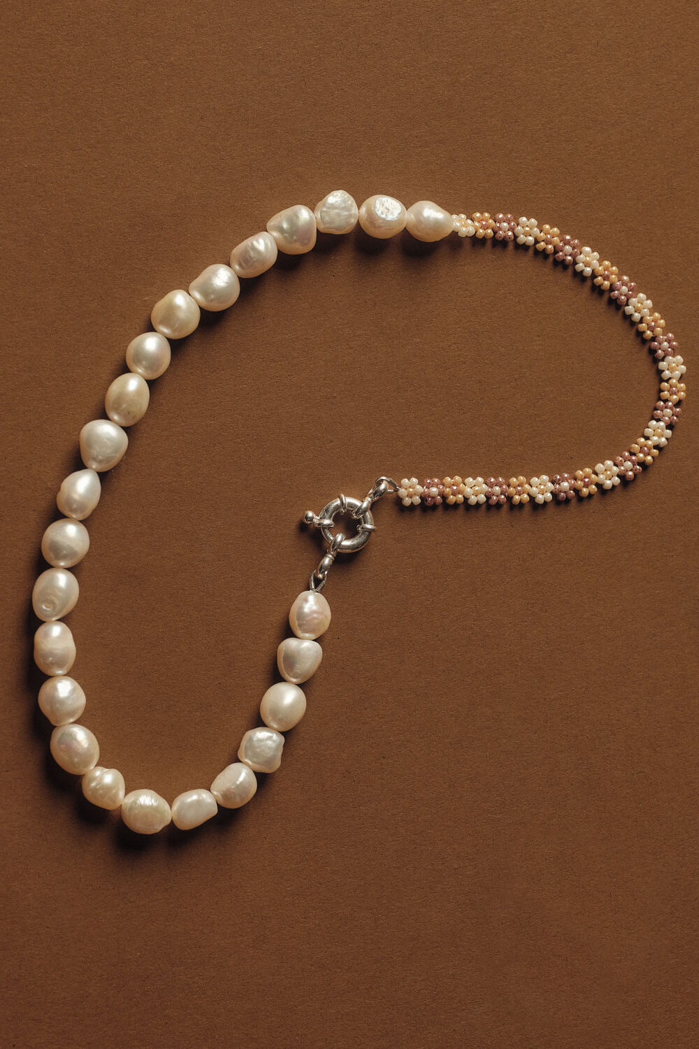 Halskette mit Perlblumen und Süsswasserperlen.
